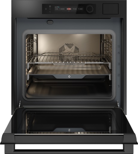 - Удобные вместительные противни и решётки, а также опция телескопических направляющих в зависимости от комплектации.