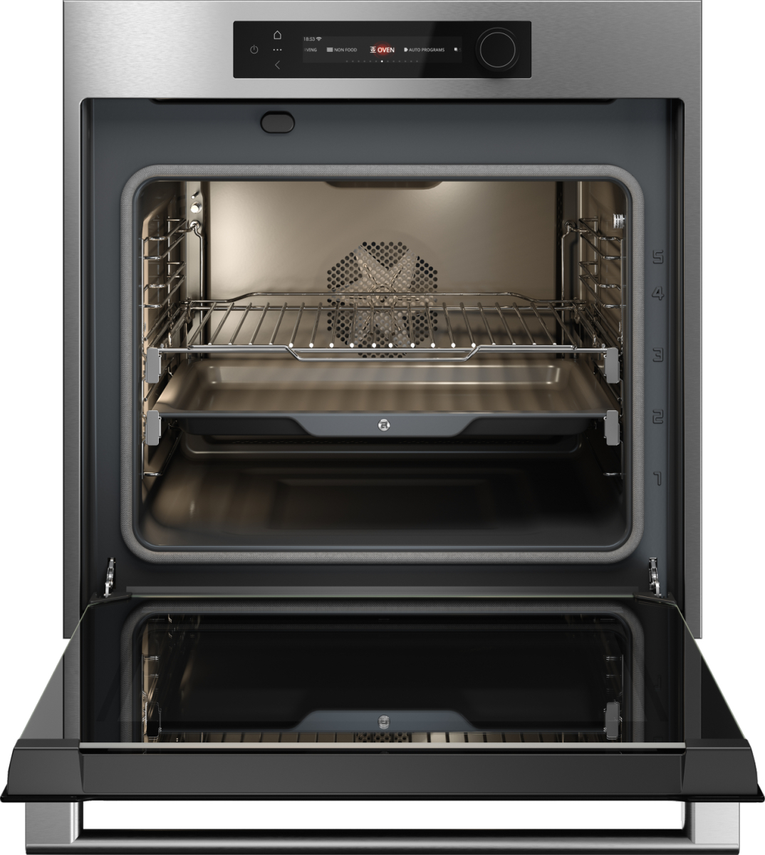 Эргономичная конструкция дверцы и направляющих делает извлечение горячих противней безопасным и удобным.