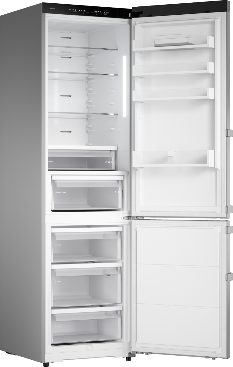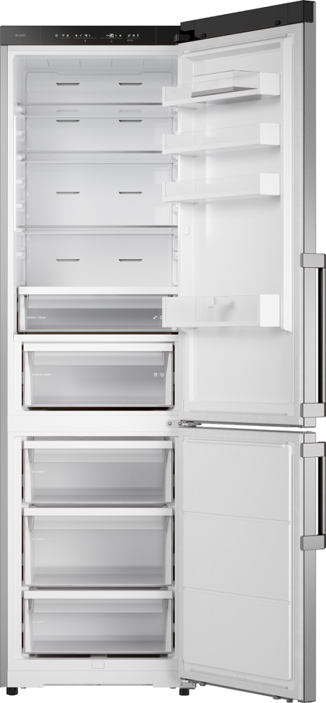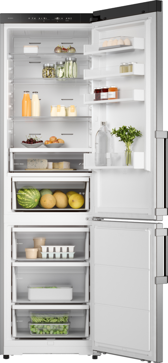 Холодильник серии Series 2 в цвете Black Steel. Система Opti Flow для стабильной температуры и ящик Freshbox для овощей. Надежное хранение продуктов в элегантном и лаконичном исполнении бренда.