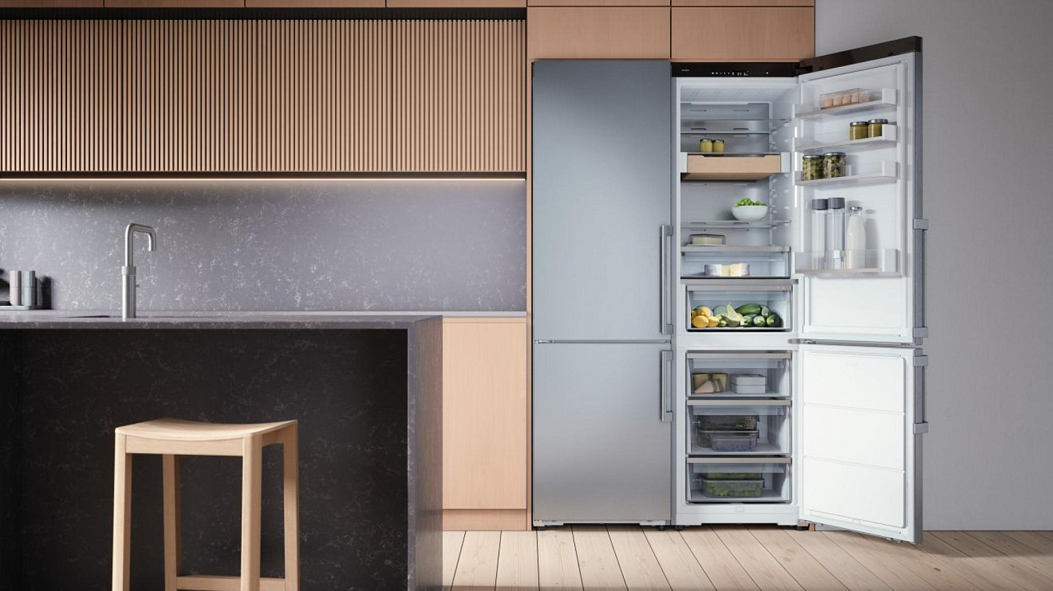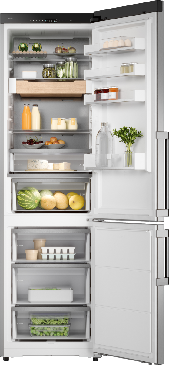 Холодильник в цвете Black Steel. Высокая энергоэффективность, NoFrost и система Fresh Air™ против бактерий. Стильный акцент в интерьере и ваша личная гарантия свежести продуктов на очень долго.