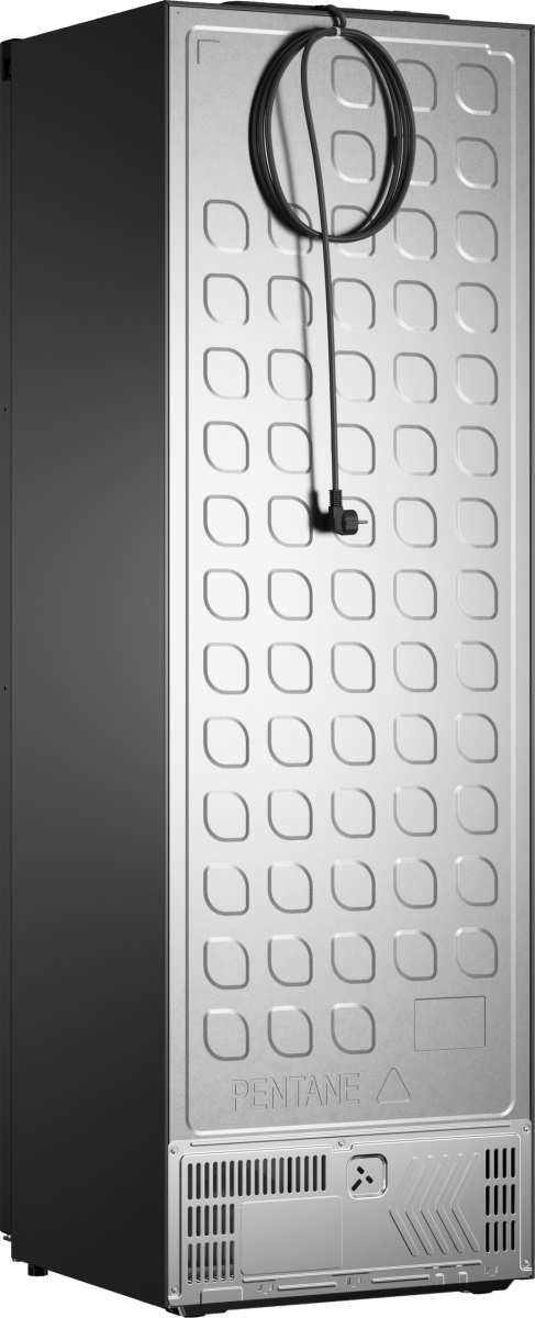 Стильный полноразмерный холодильник в матовом чёрном корпусе, который органично впишется как в минималистичную кухню, так и в насыщенный интерьер. При высоте 185 см и базовых габаритах 59×59 см агрегат остаётся компактным по площади установки, при этом предлагая объём 294 л — удобный для хранения продуктов всей семьи или размещения в кладовой.