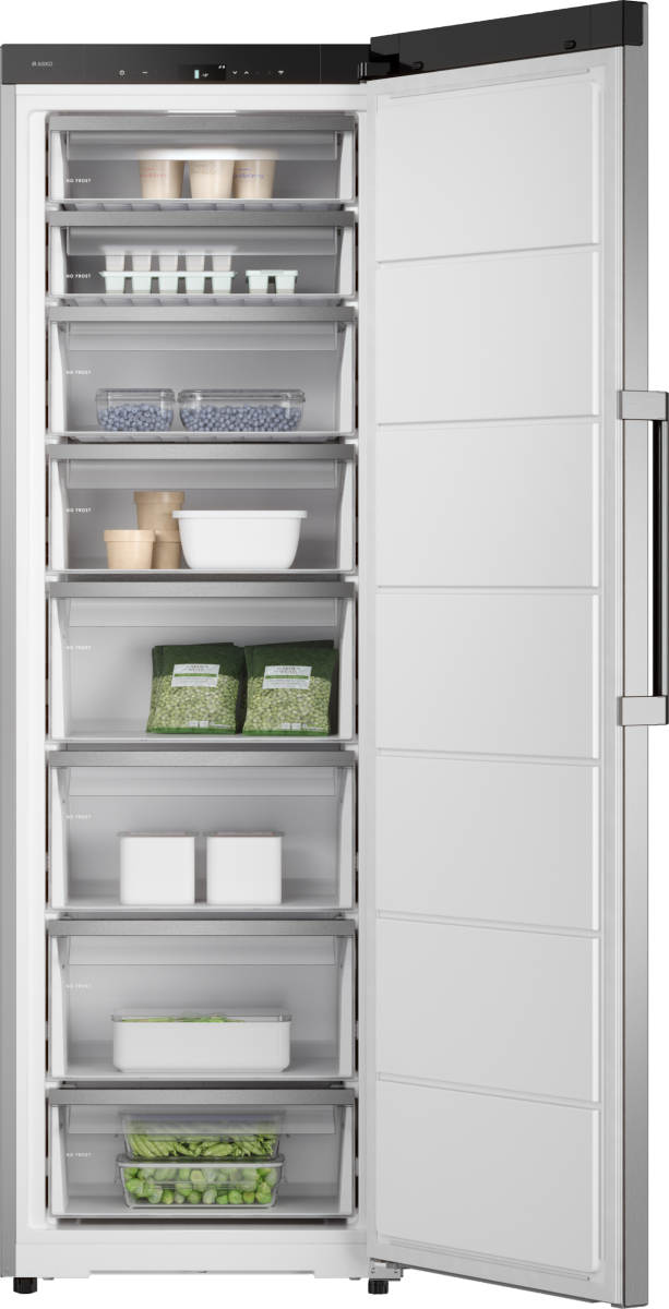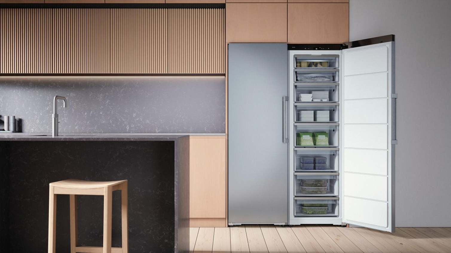 Морозильная камера в стальном корпусе Series 5. NoFrost, быстрая заморозка и тихая работа 34 дБ. Профессиональный уровень сохранения продуктов в стильном и надежном отдельностоящем исполнении.