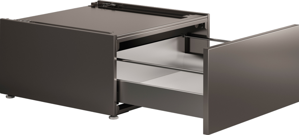 Напольный ящик Hidden Helpers™ в цвете титан. Создает дополнительное пространство для хранения и эргономичную высоту для стирки. Надежная стальная конструкция и безупречный скандинавский стиль.