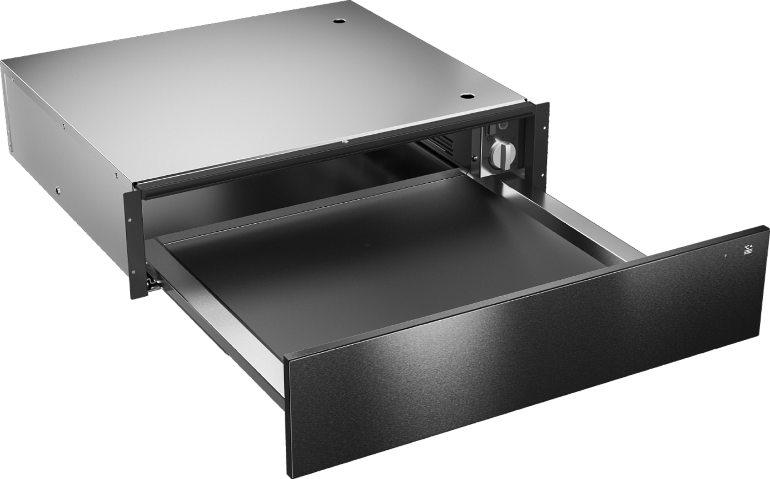 Подогреватель посуды в черной стали. Телескопические направляющие, нажимной механизм и противоскользящий коврик. Идеален для подачи блюд «с пылу с жару», как в самом лучшем столичном ресторане.