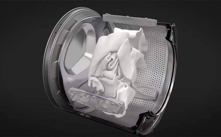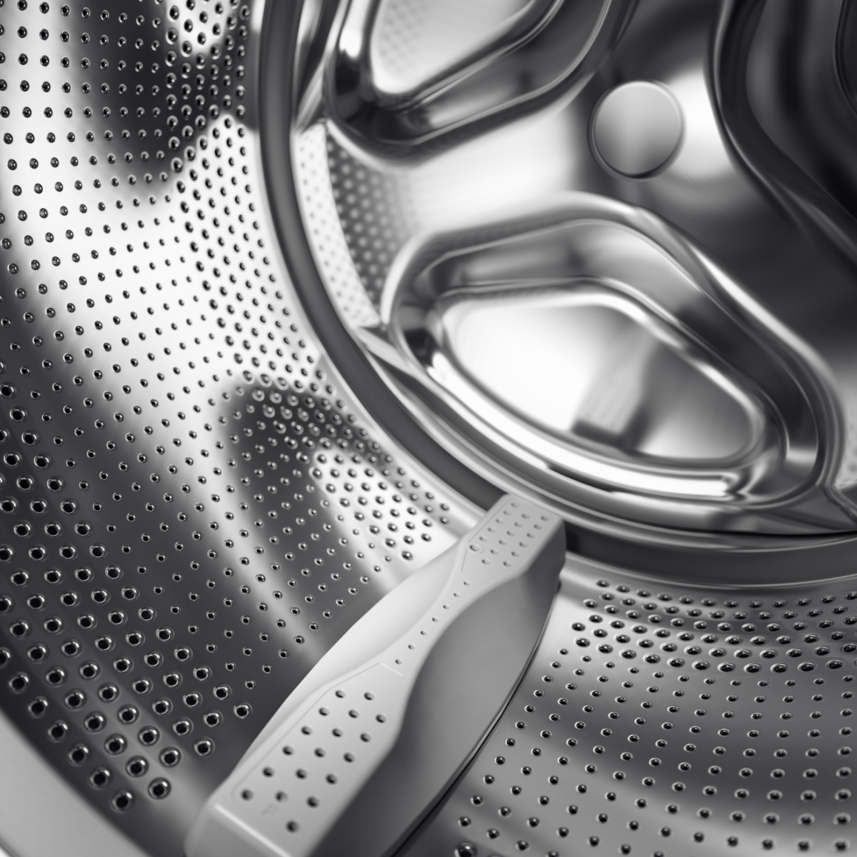 Фронтальная загрузка, ёмкость до 9 кг. Барабан из нержавеющей стали оснащён фирменными лопастями, которые бережно, но эффективно обрабатывают ткани любого типа, включая деликатные. Бесщёточный BLDC‑двигатель обеспечивает минимальный уровень шума даже при интенсивном отжиме. Прочный крепёж бака исключает вибрацию и повышает долговечность при постоянной эксплуатации.
