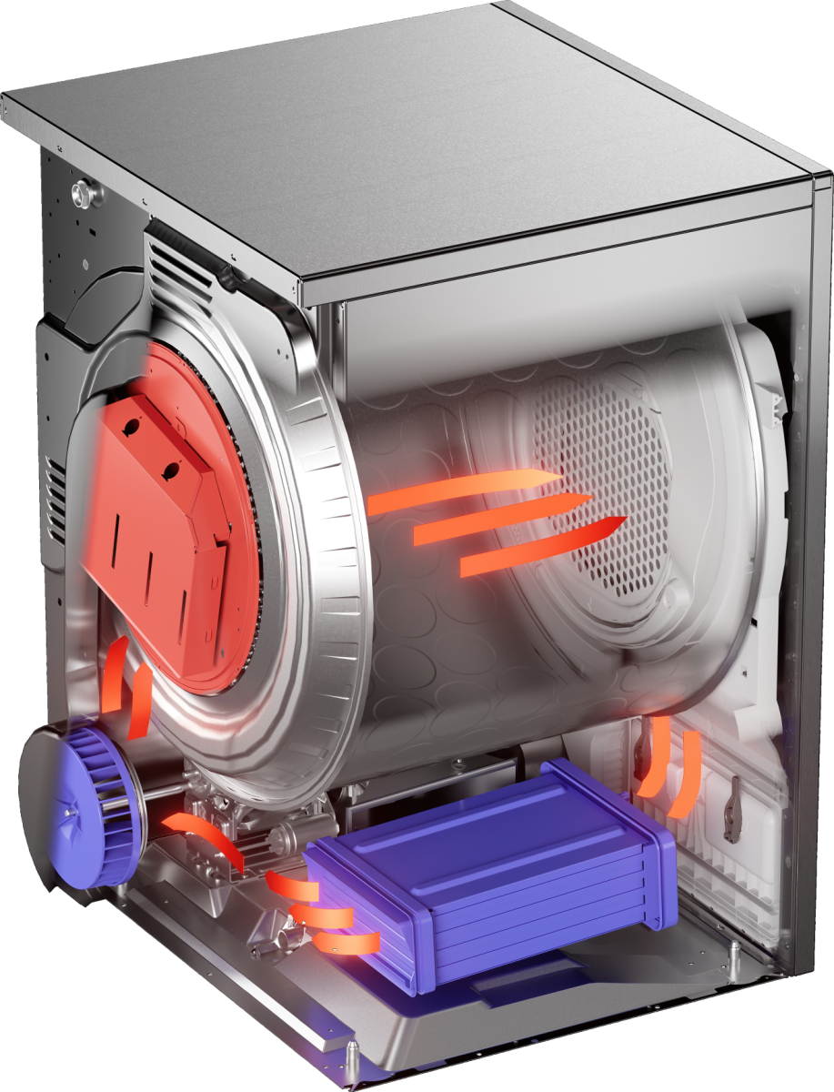- Конденсационная сушка: отвод конденсата в встроенную ёмкость или в канализацию.