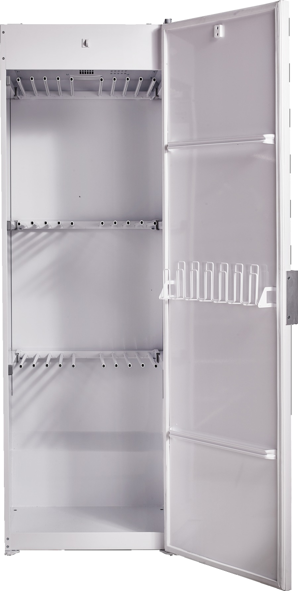Сушильный шкаф для бережной сушки деликатных вещей и обуви. 16 метров складных вешалок, автоматические программы и низкий уровень шума. Скандинавская надежность и эргономика в вашей прачечной.