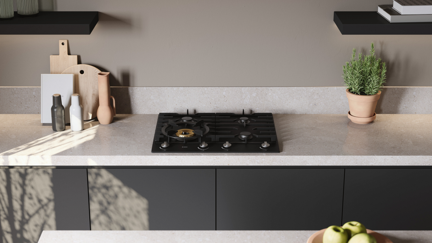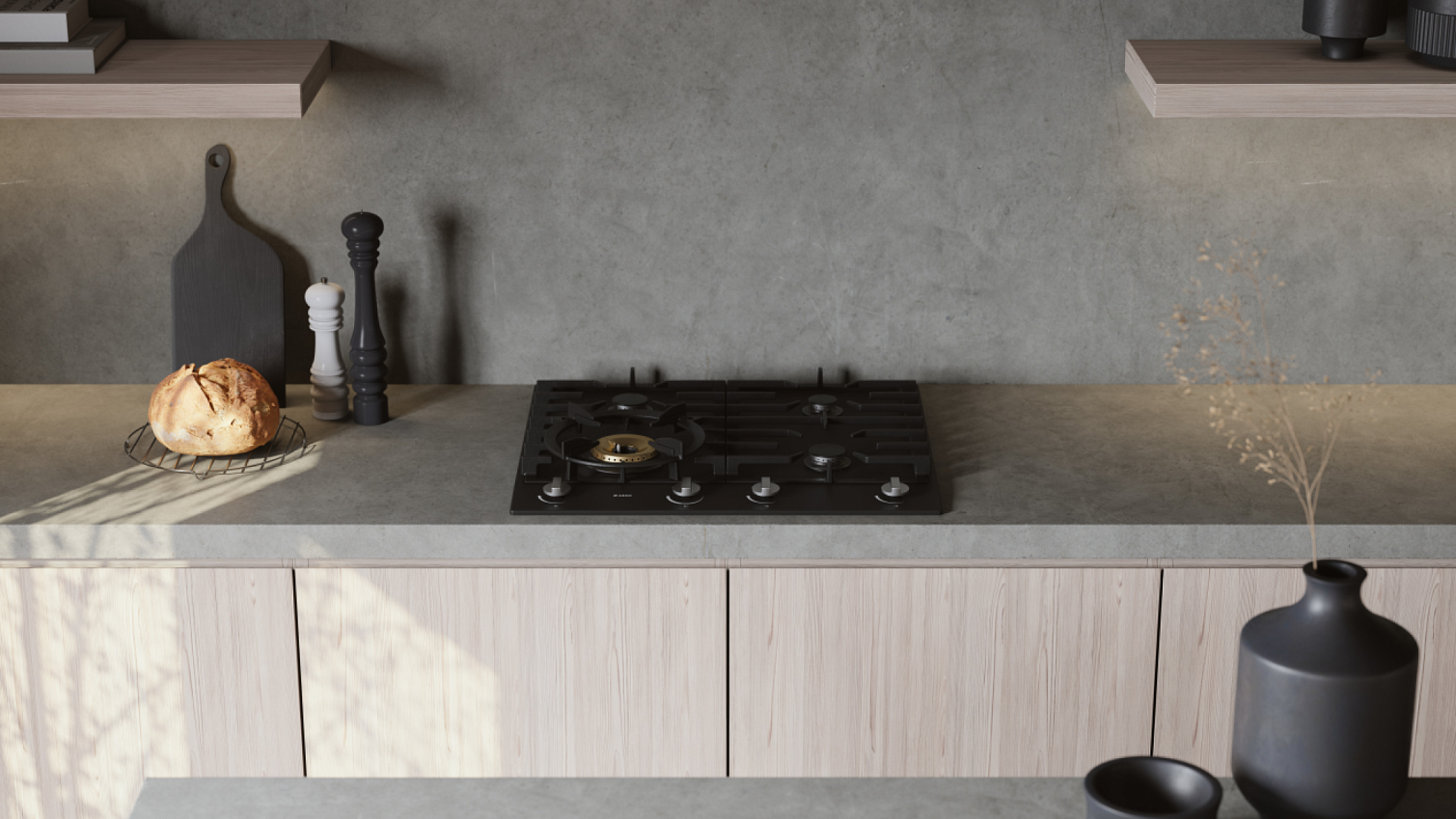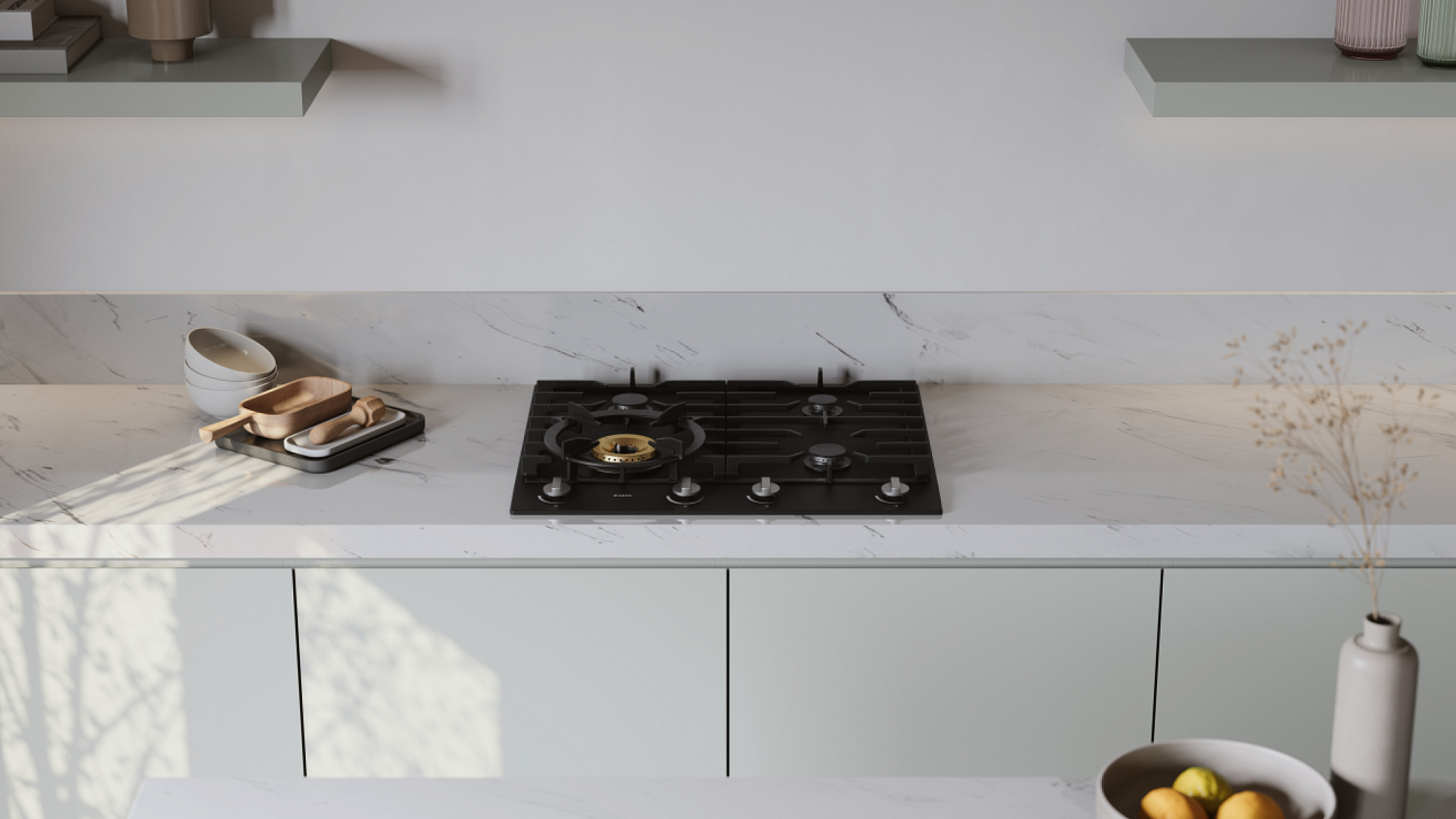 Газовая панель с мощной конфоркой Super Vario Wok. Эмалированное покрытие, надежный газ-контроль и чугунные решетки. Скандинавская эстетика и профессиональный контроль пламени для ваших шедевров.