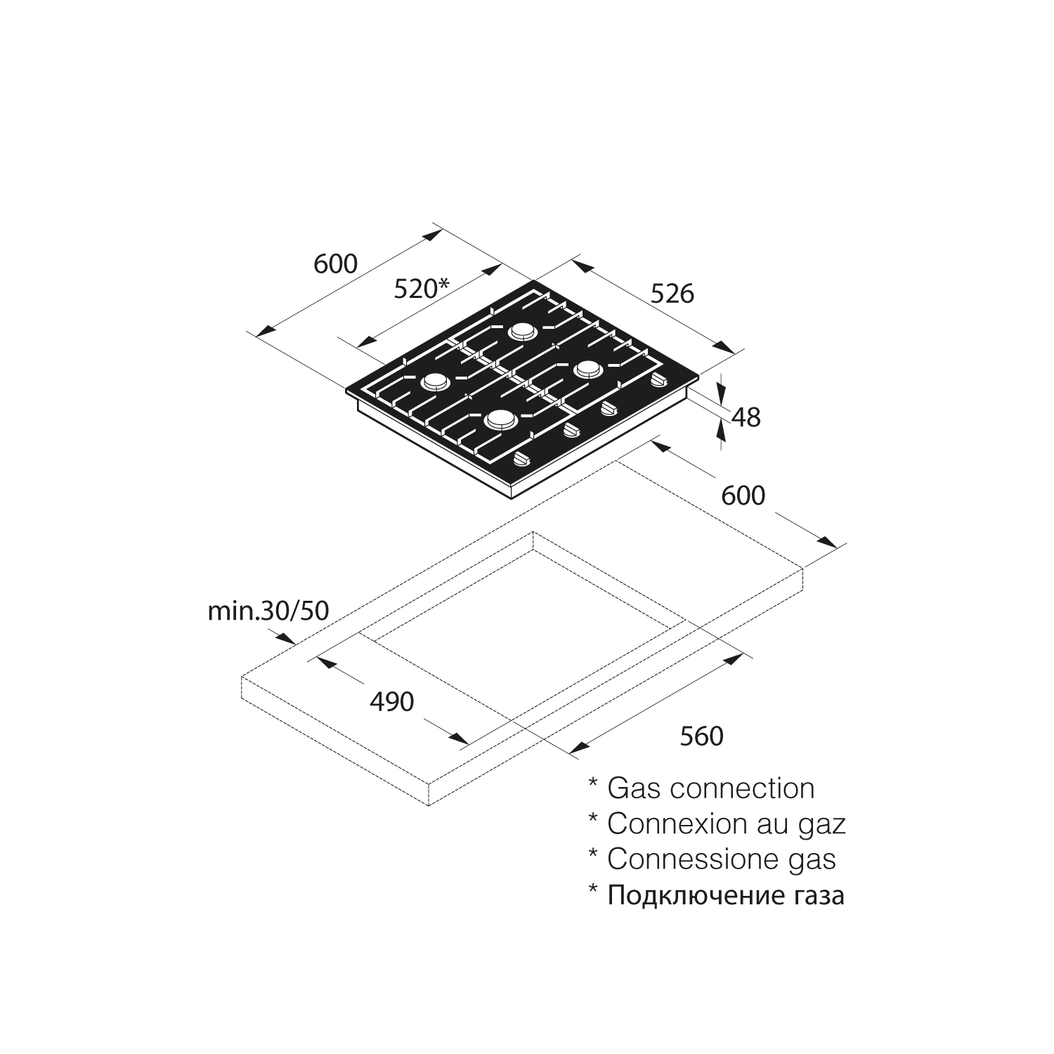 - Подключение: природный газ (с комплектом для переоборудования на сжиженный газ).