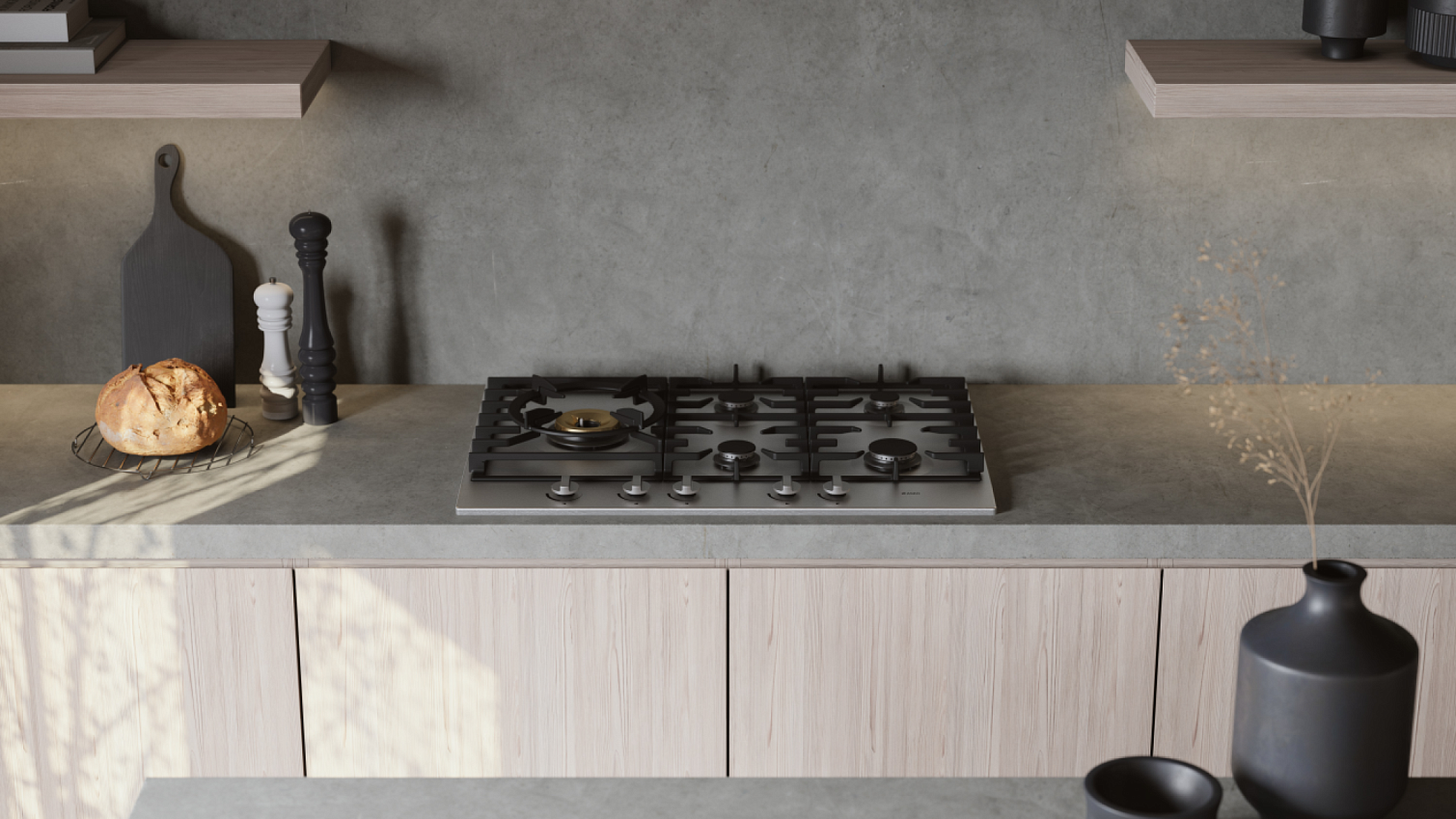 Газовая варочная панель из нержавеющей стали с 4 горелками A+. Эффективный нагрев, прочные чугунные решетки и надежный электроподжиг. Профессиональный контроль пламени элитной серии Craft для дома.