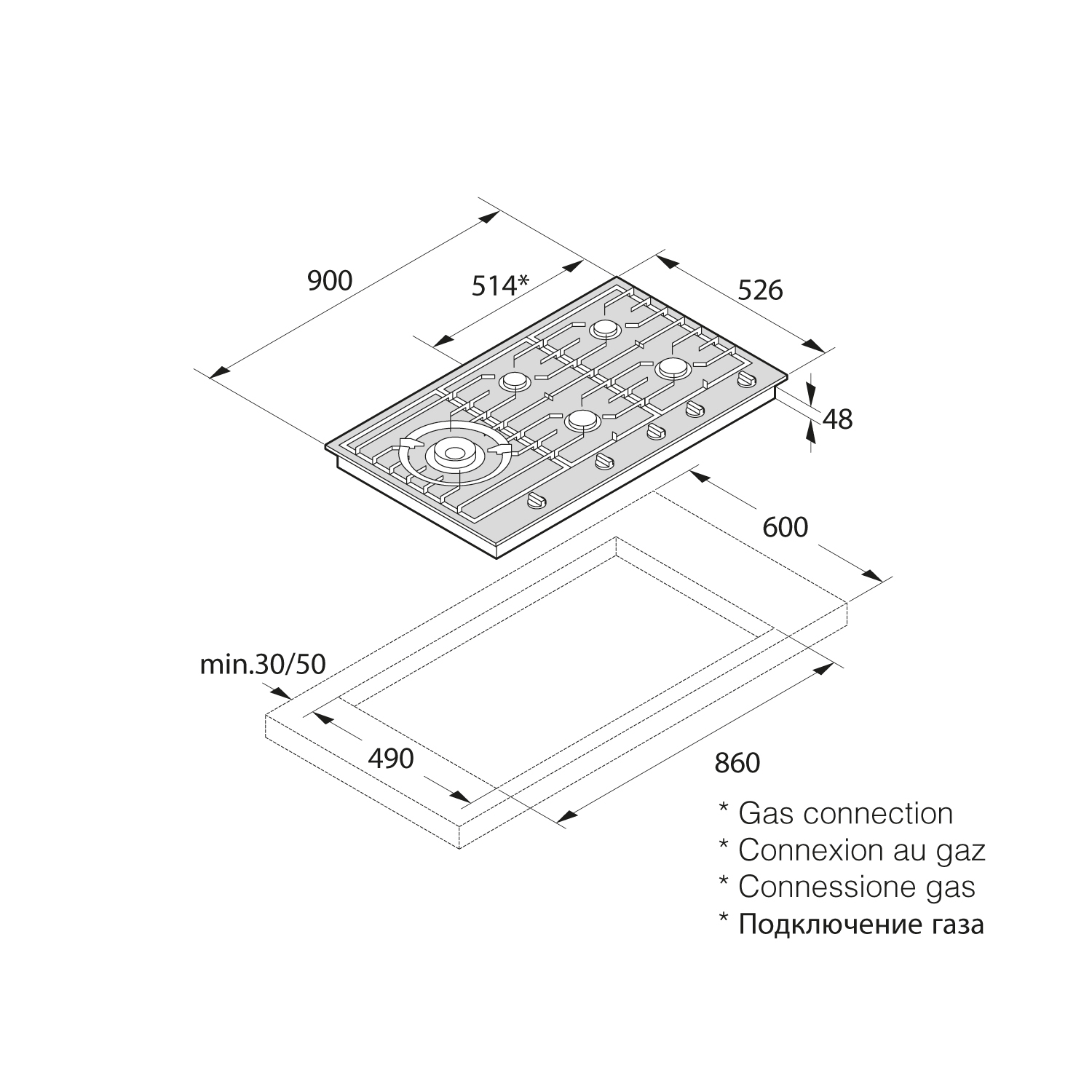 - Тип: газовая варочная панель;