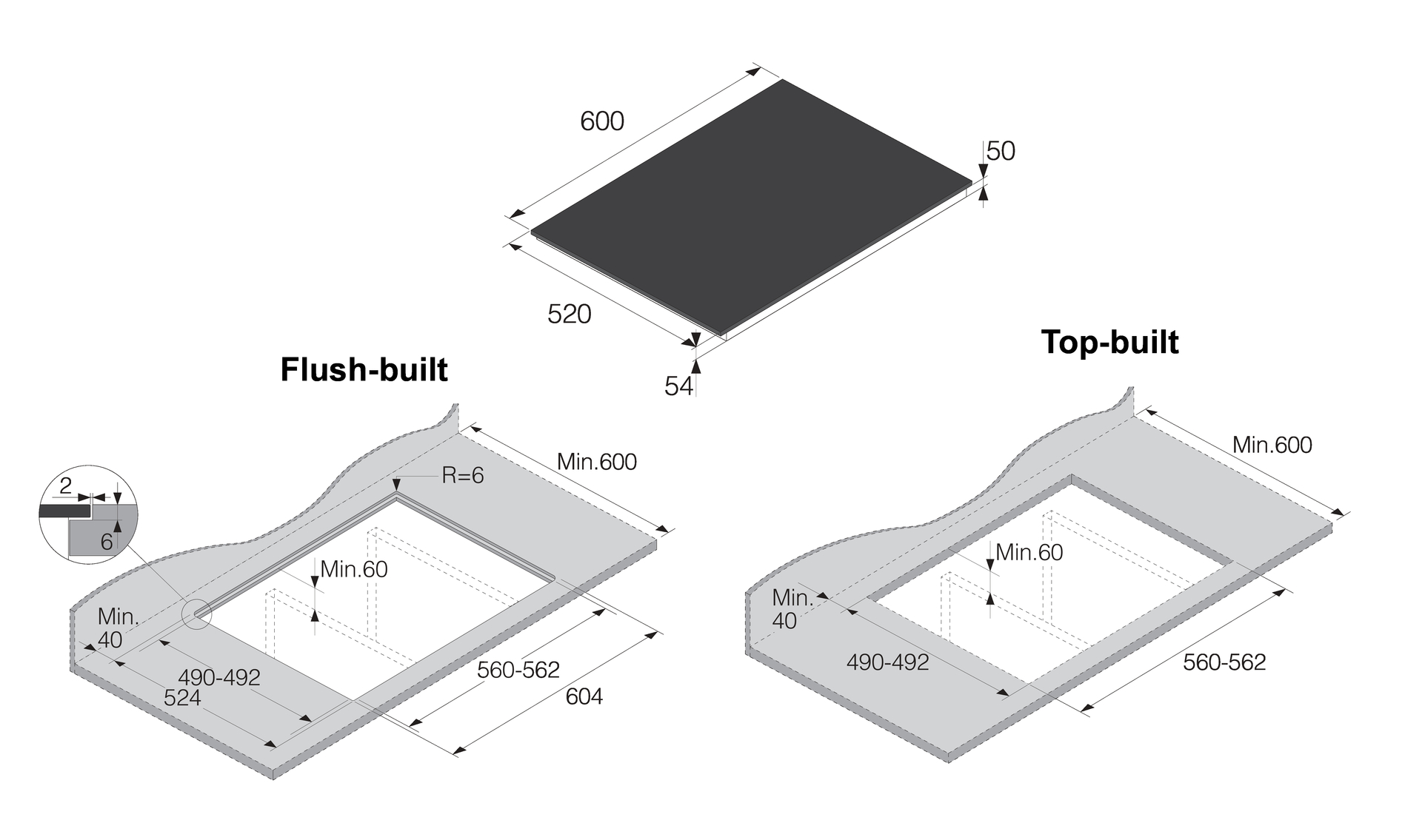 - встройка заподлицо со столешницей — эстетичный внешний вид.