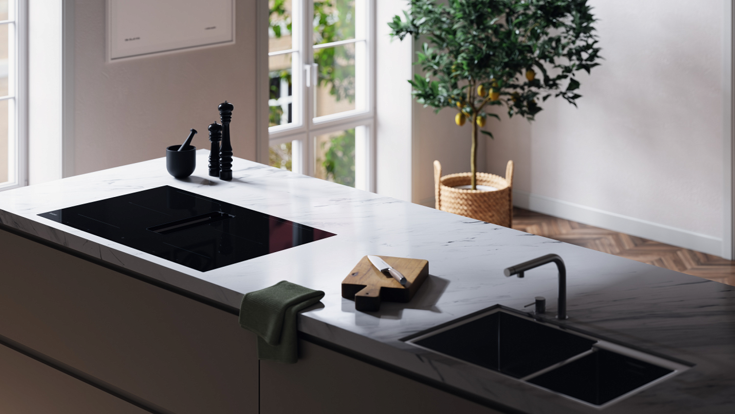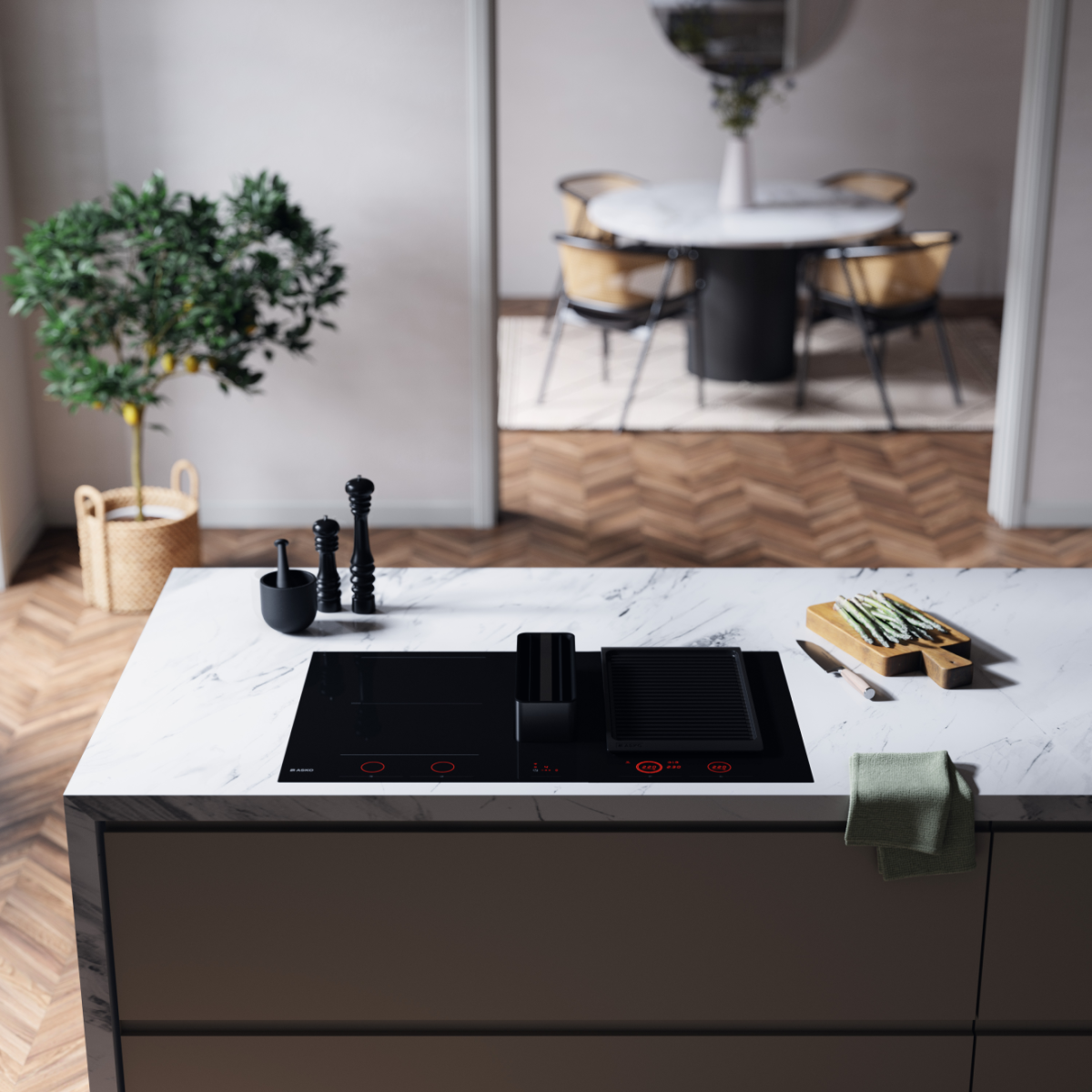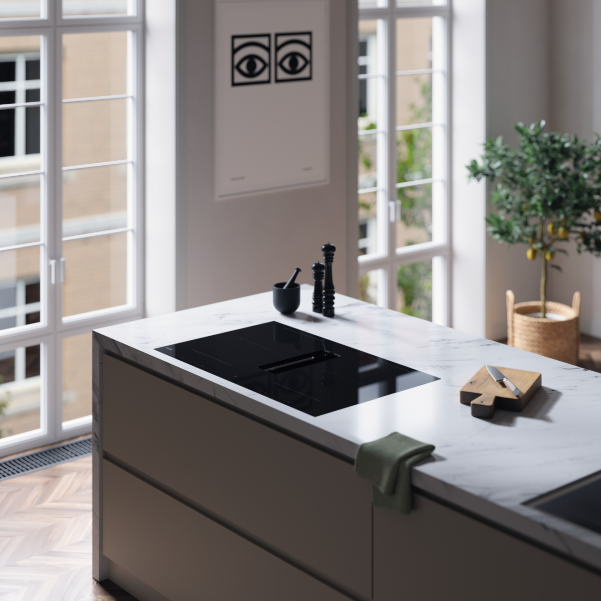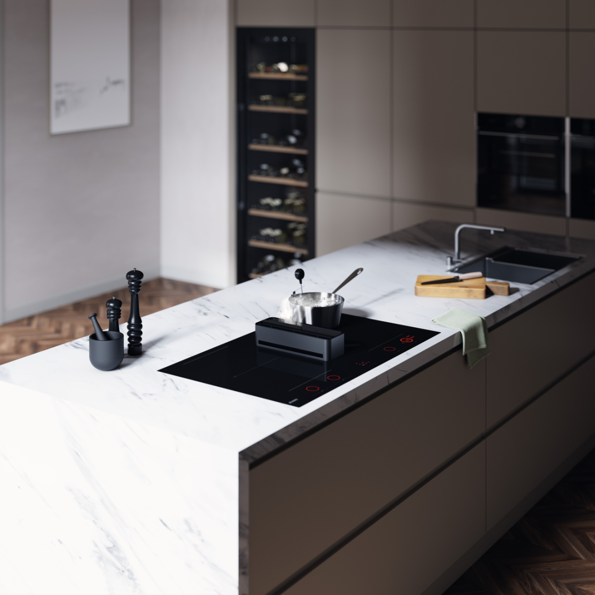 Варочная панель со встроенной вытяжкой. Индукция Celsius°Cooking™ и мощная очистка воздуха в одном приборе. Свобода планировки кухни и идеальный микроклимат без лишних запахов и испарений.