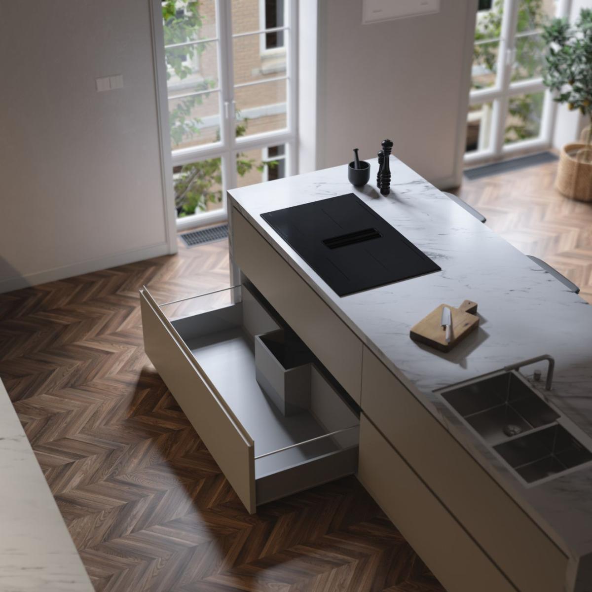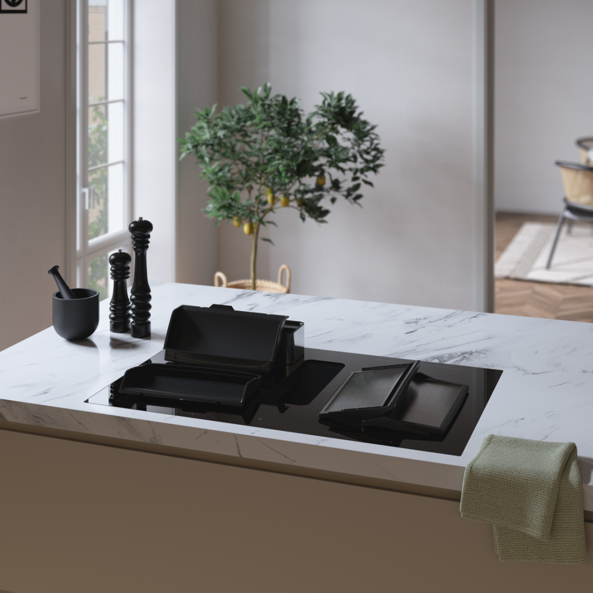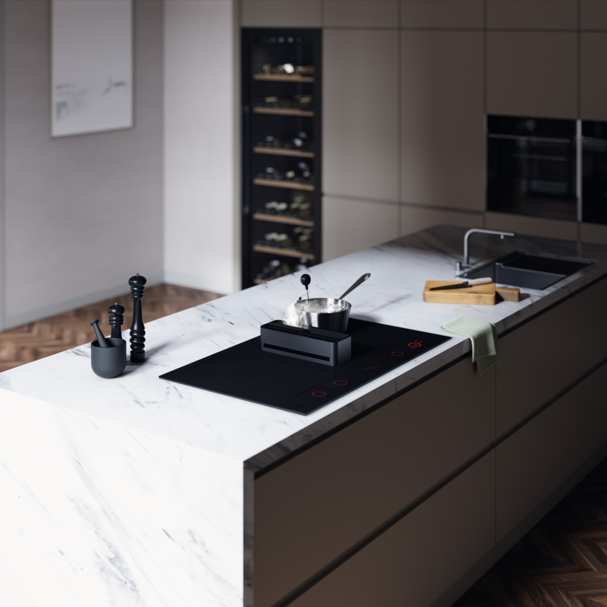 Индукционная панель со встроенной вытяжкой и технологией Celsius°Cooking™. Автоматический вытяжной модуль, два мощных мотора и функция Bridge. Свобода планировки и чистый воздух без лишних запахов.