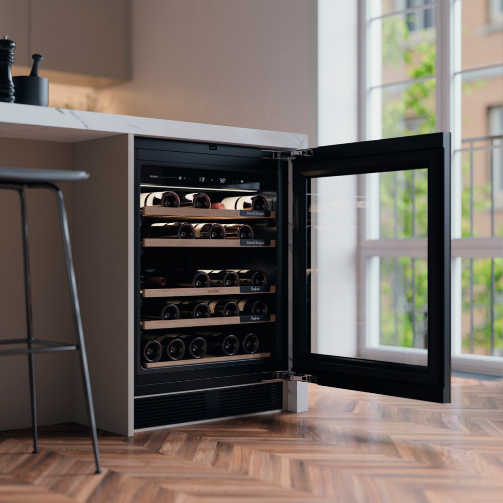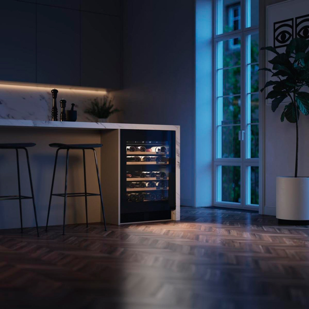 Винный шкаф серии Elements под столешницу. Идеальные условия для 44 бутылок: УФ-защита, отсутствие вибраций и точный климат-контроль. Элегантное решение для правильного хранения вашей коллекции вин.