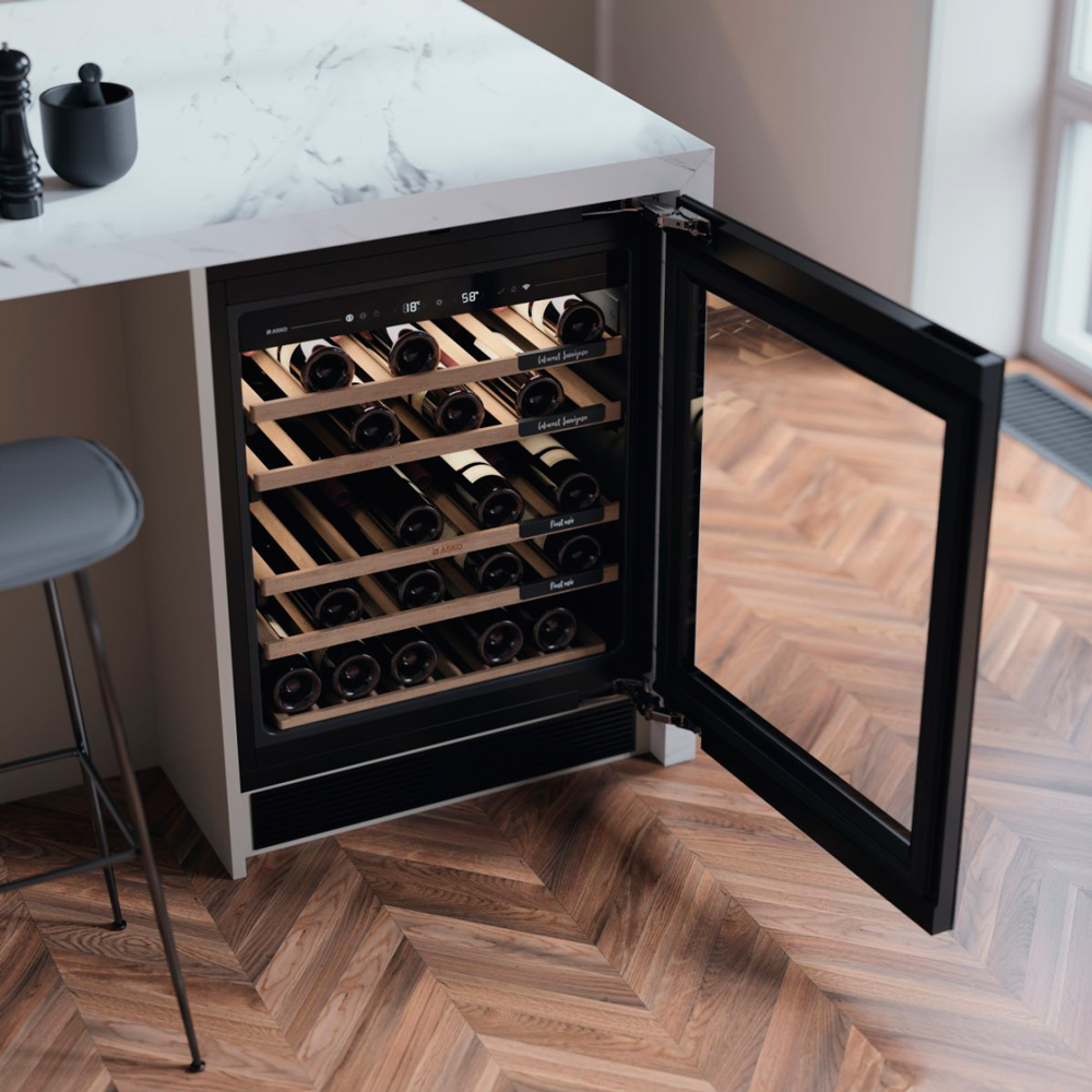 Профессиональный винный шкаф ASKO WU886G1ENB1, произведённый в Сербии, сочетает сдержанную элегантность и функциональность. Чёрный корпус в паре с деревянными полками создаёт благородный акцент в современном интерьере кухни и надёжно хранит коллекцию вина.