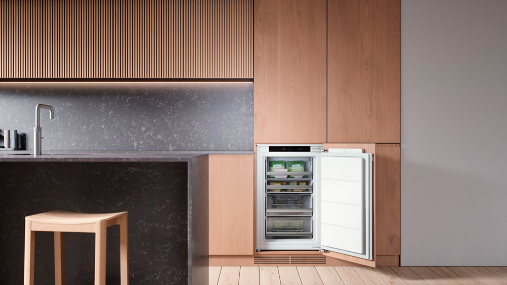 Встраиваемая морозилка с технологией Super Freeze. Электронное управление, высокая мощность замораживания и энергоэффективность класса А++. Надежное и качественное хранение запасов на долгий срок.