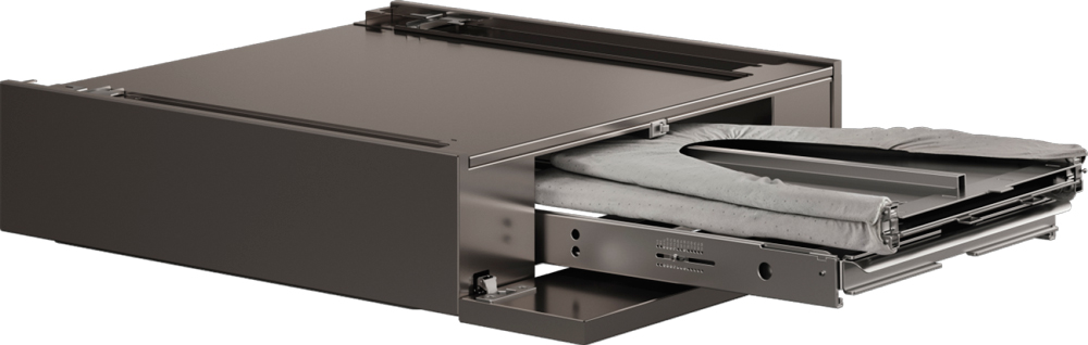 Выдвижная гладильная доска в цвете титан — невидимый помощник в прачечной. Компактно скрыта между приборами, легко раскладывается и всегда под рукой. Стиль и эргономика скандинавского дизайна.