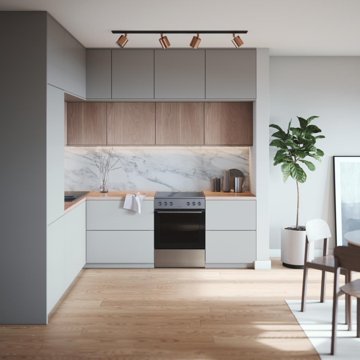 - Несложный монтаж — подходит для различных типов кухонных планировок.